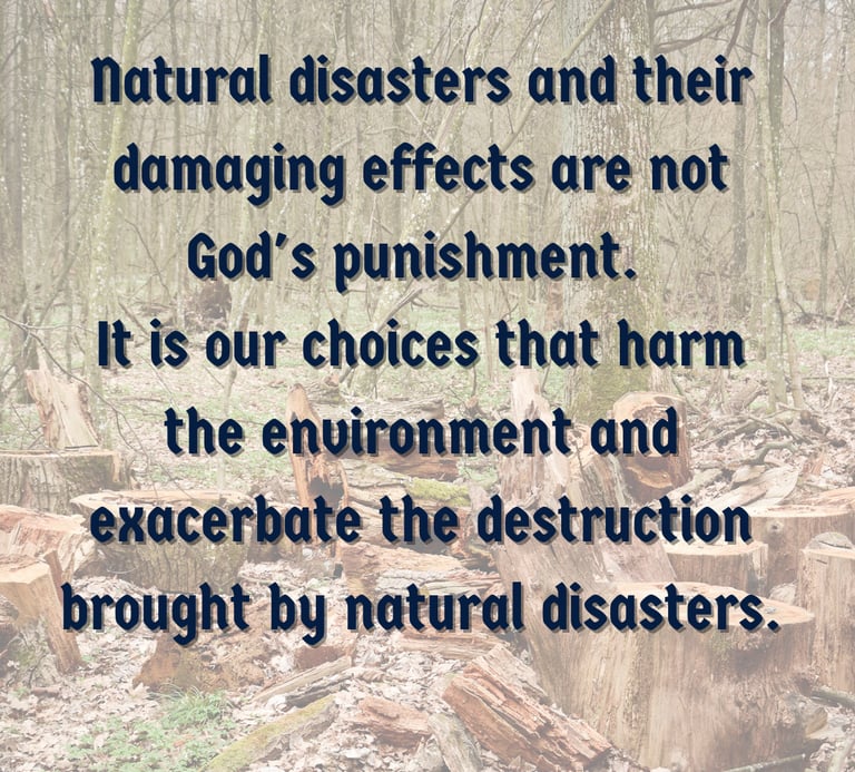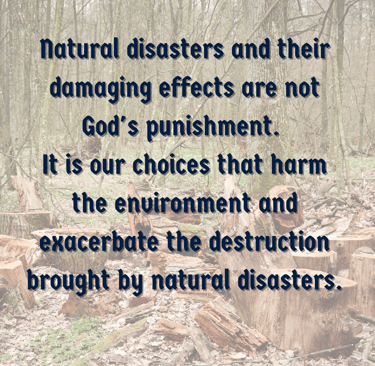 Natural disasters and their damaging effects are not God's punishment. It is our choices that harm the environment and exacerbate the destruction brought by natural disasters.