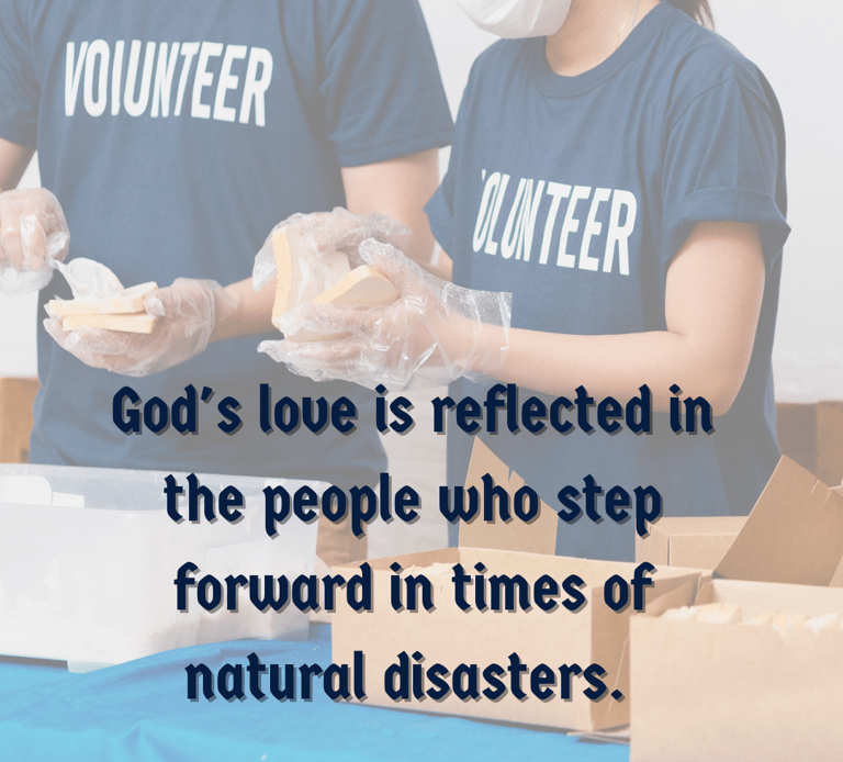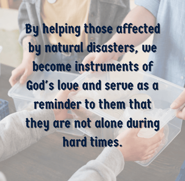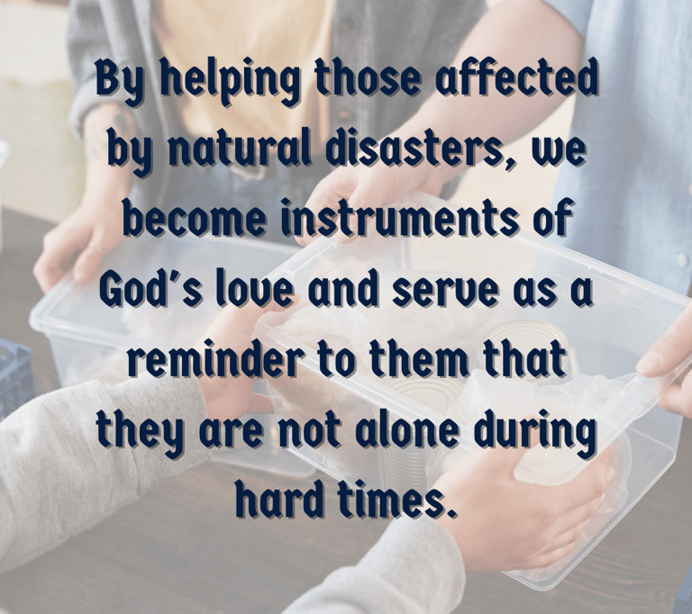 Small acts of kindness can go a long way. By helping those affected by natural disasters, we become instruments of God's love and serve as a reminder to them that they are not alone during hard times.