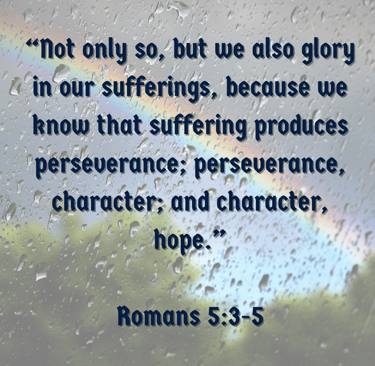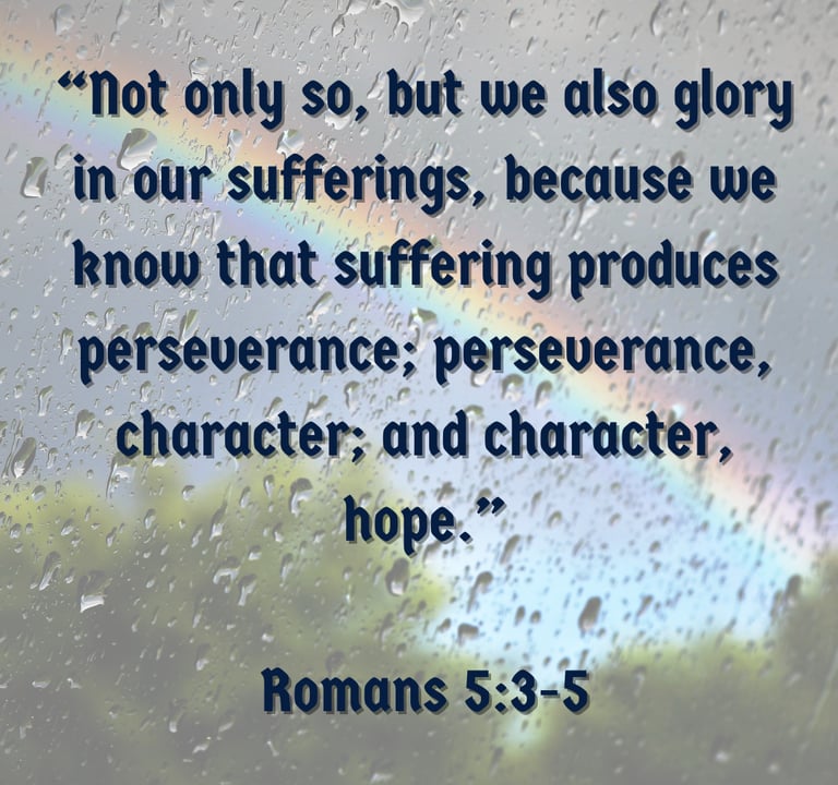 Romans 5:3-4 beautifully explains God's gift of resilience: “Not only so, but we also glory in our sufferings, because we know that suffering produces perseverance; perseverance, character; and character, hope.”