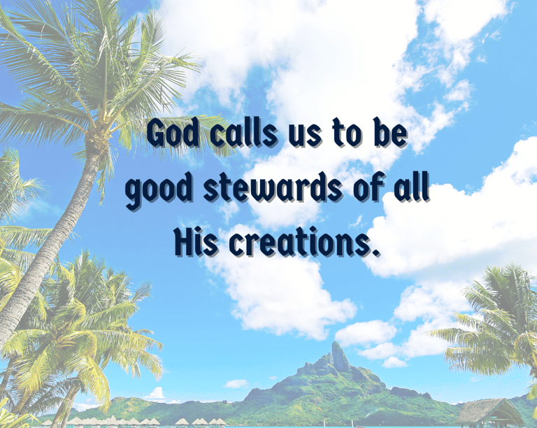 God calls us to be good stewards of all His creations. It was mentioned in Genesis 2:15, "The Lord God took the man and put him in the Garden of Eden to work it and take care of it."