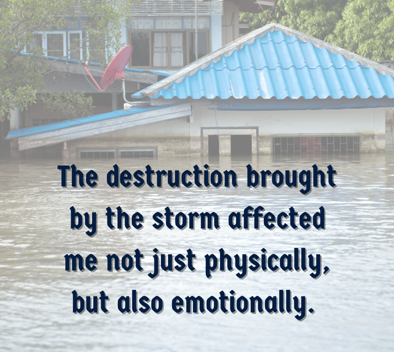 The destruction brought by the storm affected me not just physically, but also emotionally. I grew up fearing heavy rains and strong winds.