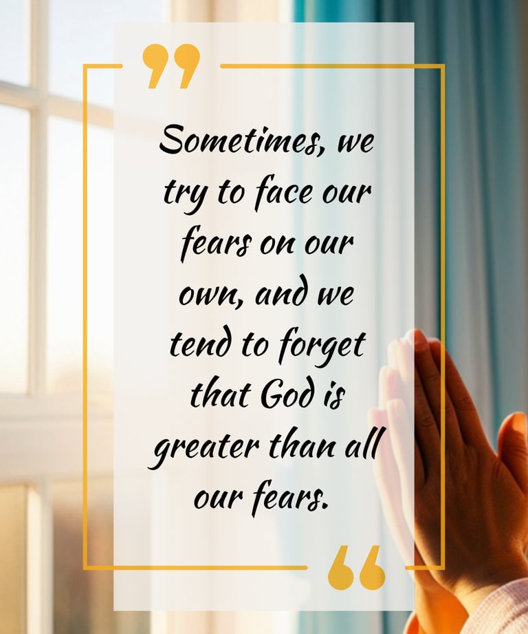 Sometimes, we try to face our fears on our own, and we tend to forget that God is greater than all our fears. God does not want us to carry our worries alone. When everything feels scary and uncertain, our faith in God is a strong foundation we can hold on to.