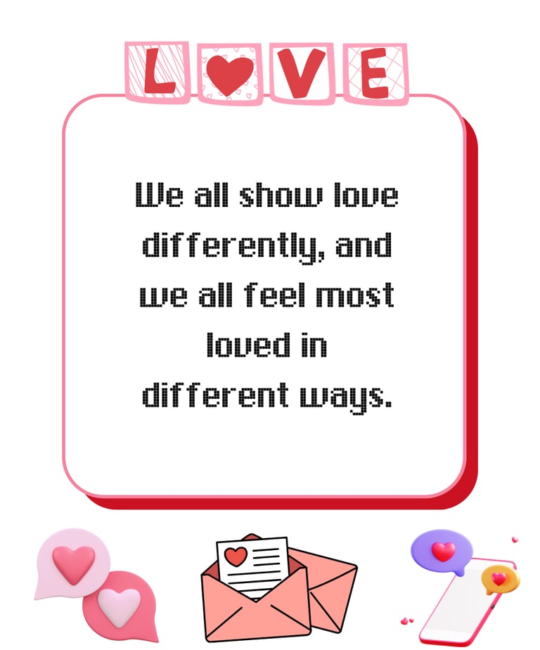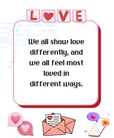 Love is something we give and receive. Each person is unique. We have different personalities, including how we express love and feel loved. Understanding each other's love languages builds stronger and better relationships.