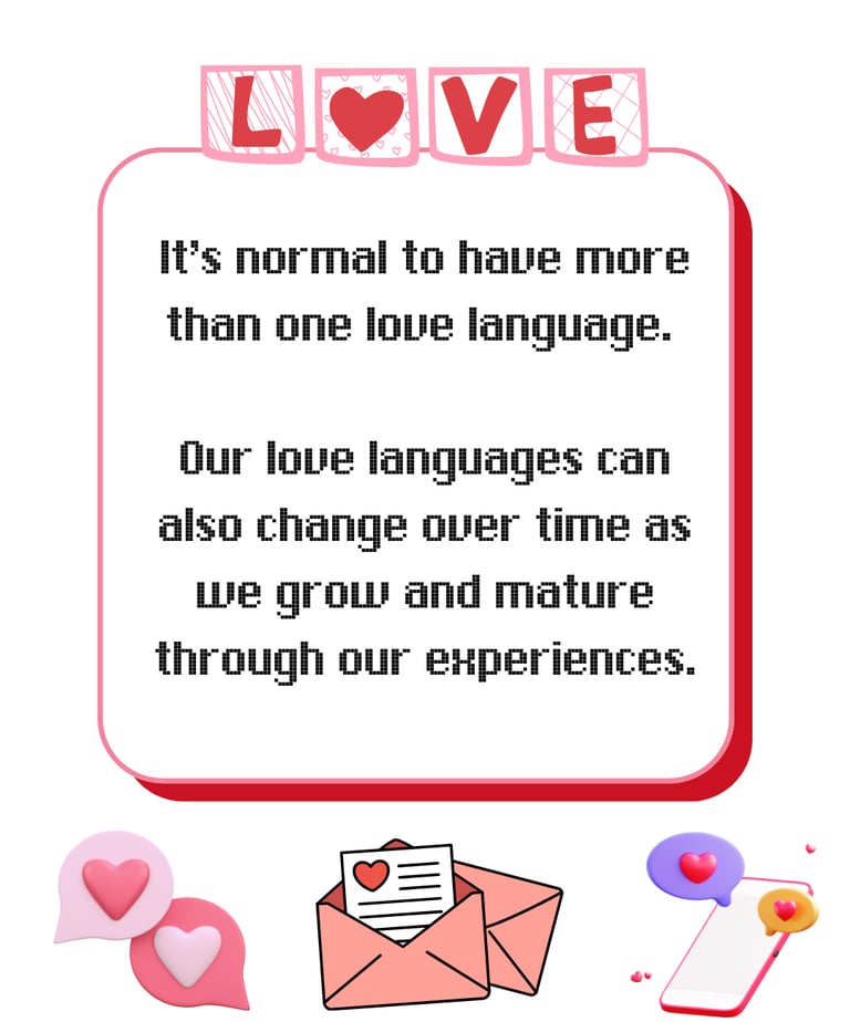 It’s normal to have more than one love language. Our love languages can also change over time as we grow and mature through our experiences. If you want to take the test to know your love language, click here.