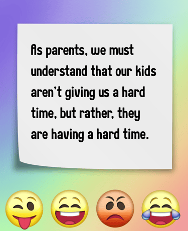 As parents, we must understand that our kids aren't giving us a hard time, but rather, they are having a hard time. To them, it feels like their world is ending. Their big feelings are real, even when the reasons seem small and trivial.