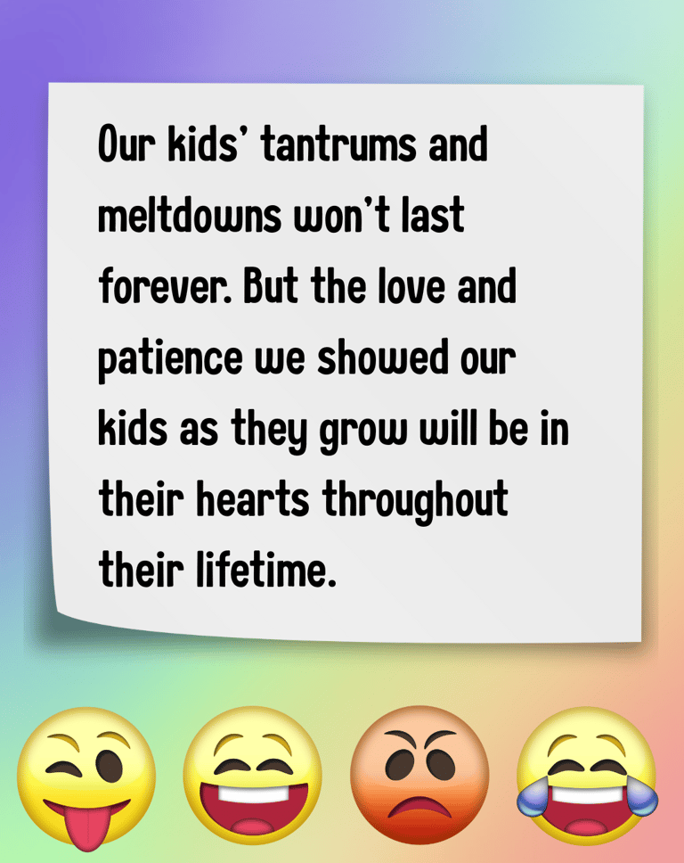 Remember, my dear fellow parents, our kids' tantrums and meltdowns won't last forever. But the love and patience we showed our kids as they grow will be in their hearts throughout their lifetime.